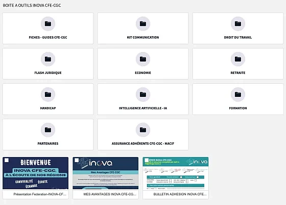Le site de votre Fédération INOVA CFE-CGC met à disposition une boîte à outils riche et pratique, conçue pour accompagner les équipes syndicales dans leurs missions au quotidien. Accessible à tous les adhérents, elle regroupe de nombreuses ressources organisées par thématiques.